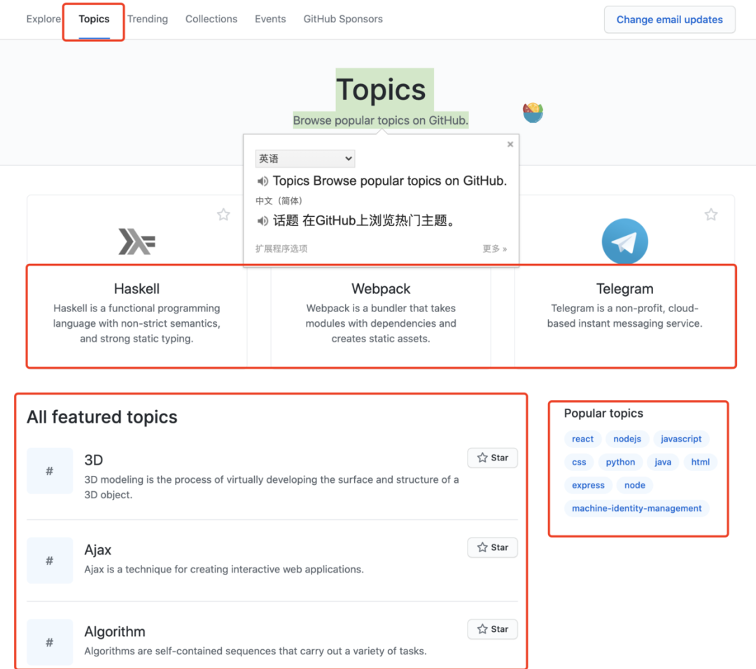 Topics 里面也可以看某个话题或者领域内最优秀的项目。
