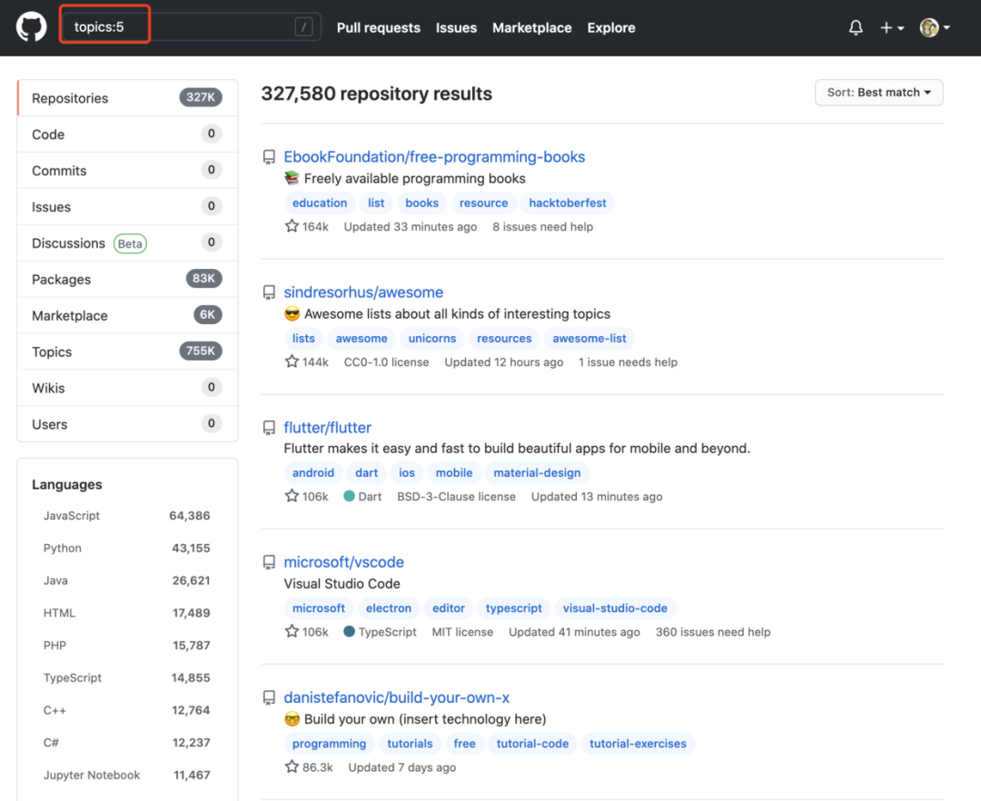 如:Repository search results (github.com)